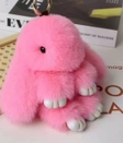 Чарівний, м'який брелок у вигляді пухнастого зайчика. Виготовлений із приємного на дотик штучного хутра яскраво рожевого кольору. Лапки зайчика мають білі вставки із золотистим оздобленням. Аксесуар оснащений міцним золотистим металевим кільцем для ключів або кріплення до сумки чи рюкзака.