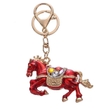 Додайте нотку розкоші та удачі до своїх ключів чи сумки за допомогою цього вишуканого брелока. Виконаний у формі граціозного коня, він має яскраве червоне емальове покриття та прикрашений блискучими кольоровими стразами на сідлі та гриві. Металева фурнітура золотистого кольору включає міцне кільце для ключів та зручний карабін для легкого кріплення.