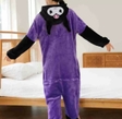 Комбінезон виконаний у яскравому фіолетовому кольорі з контрастними чорними рукавами та капюшоном. На грудях присутня невелика вишивка або нашивка із зображенням Kuromi. Капюшон має деталізований дизайн мордочки Kuromi з вушками, що звисають, що додає грайливості образу. Ідеально підходить як для домашнього відпочинку, сну, так і для тематичних вечірок чи фестивалів.Розміри 130, 140