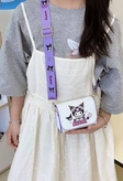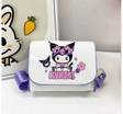 Ця стильна та яскрава дитяча сумка-кросбоді ідеально підійде для маленьких шанувальників персонажа Куромі.Дизайн: Сумка виконана в білому кольорі з фіолетовим кантом і ремінцем. На передній частині зображений популярний персонаж Куромі з квітами та написом "KUROMI".Особливості: Регульований фіолетовий ремінець, прикрашений мініатюрними зображеннями Kuromi, що додає аксесуар особливому шарму.Матеріал: Глянцева поверхня сумки легко чиститься.Призначення: Ідеально підходить для прогулянок, зберігання дрібниць, таких як телефон, ключі або іграшки.Розмір 11см*9см*4см