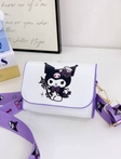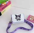 Ця стильна та компактна сумка стане чудовим доповненням до вашого образу.Дизайн: Сумка білого кольору з фіолетовим кантом. У передній частині зображений популярний персонаж Куромі в готичному стилі з черепом на капелюсі та бантиком.Ремінець: Широкий фіолетовий ремінець, прикрашений візерунком із зображеннями куром і черепів, що дозволяє носити сумку через плече. Закривається на магнітну кнопку.