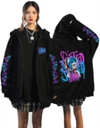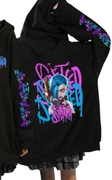 Це стильне худі з капюшоном, присвячене культовій героїні Джинкс із популярного серіалу Arcane. Дизайн, виконаний у вигляді яскравого графіту із зображенням Джинкса, що тримає свою зброю, та написами в неоновому стилі.Дизайн: Чорний колір худі є ідеальним фоном для виразного повнокольорового принта на грудях та додаткових деталей на рукавах.Особливості: Капюшон захищає від вітру, а кишеня-кенгуру додає практичності.Ідеальний вибір для фанатів серіалу Arcane та гри League of Legends, які хочуть виразити свою любов до персонажа Джинкса.