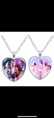 Елегантний кулон у формі серця із зображенням трьох головних героїв анімаційного фільму.Кулон-кольє у формі серця з кулонами "Мисливці на демонів" від K-pop із зображенням Румі, Зої та Міри. Кожен кулон має форму серця та прикрашений яскравим зображенням учасників групи Huntrix, відомого аніме K-pop Demon Hunters, Кей поп мисливиці на демонів. Ідеально підходить для поклонників мультфільму та K-pop культури. Сюжет фільму розповідає про K-pop групу Huntrix, які ведучу подвійне життя.