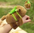 Представляємо вам чарівну плюшеву іграшку-браслет "Капібара з черепашкою" . Іграшка Капібара мають маленький рюкзачок, який додає їй шарму, а також обертовий хвостик, який створює додаткову інтерактивність під час гри. Цей милий аксесуар стане чудовим подарунком для дитини, подарунок на день народження, подарунок шанувальникам капібар.