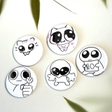 Цей чарівний набір значків створений для тих, хто любить виражати свою унікальність та почуття гумору! У комплект входять п'ять значків з популярним "Yippee Creature" (також відомим як "Autism Creature" або "Yippee meme") у різних позах, а також один милий пін у формі котика з великими очима.
