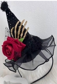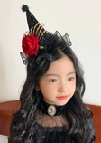 Додайте містичного шарму до свого образу на Хелловін з цим унікальним обручем-міні-капелюшком відьми. Цей аксесуар поєднує в собі класичні елементи відьомського стилю з елегантними готичними деталями.Особливості:Дизайн: Чорний міні-капелюшок відьми з блискучими крапками, прикрашений витонченою червоною трояндою та моторошним елементом у вигляді кістяної руки.Деталі: Ніжна чорна вуаль додає загадковості та вишуканості.Матеріал: Виготовлений з якісних матеріалів для комфортного носіння.Ідеально для: Тематичних вечірок, святкування Хелловіна, косплею або створення унікального готичного образу.Розмір 25*20 см