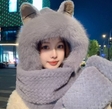 Шапка-шарф із вушками — це стильний та затишний аксесуар для холодної пори року. Виготовлена з м'якого плюшевого матеріалу, ця шапка-шарф поєднує в собі функціональність і миловидний дизайн: вушка на капюшоні додають образу грайливості, а тепла підкладка забезпечує комфорт і захист від холоду. Вбудований шарф дозволяє додатково утеплити шию, а зручна застібка гарантує надійну фіксацію, а покож подовжений шафр має рукавички, які зігріють вас в холодну погоду. Ідеальний вибір для стильних зимових прогулянок або як подарунок для близьких!