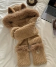 Шапка-шарф подовжений зрукавичками із вушками — це стильний та затишний аксесуар для холодної пори року. Виготовлена з м'якого плюшевого матеріалу, ця шапка-шарф поєднує в собі функціональність і миловидний дизайн: вушка на капюшоні додають образу грайливості, а тепла підкладка забезпечує комфорт і захист від холоду. Вбудований шарф дозволяє додатково утеплити шию, а зручна застібка гарантує надійну фіксацію. Подовжений шарф з рукавичками дає тапло і вашим ручкам. Ідеальний вибір для стильних зимових прогулянок або як подарунок для близьких!