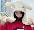 Ця м'яка, пухнаста шапка, з вушками, що рухаються, у формі милого білого Кролика Сінаморола ідеально підходить для створення грайливого та затишного образу. Виготовлена з високоякісного флісового матеріалу, вона забезпечує тепло та комфорт у холодну погоду. Шапка має довгі зав'язки, в яких знаходяться кнопочки, натискаєш і вушка піднімаються, що виконують функцію шарфа або можуть бути зав'язані під підборіддям для додаткового захисту від вітру. Деталі дизайну включають вишиті блакитні очі та рожеві щічки, що надають виробу чарівності.