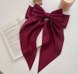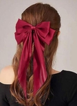 Заколка-бант для волосся.Матеріал: Високоякісний атлас.Колір: Насичений бордовий.Особливості: Великий розмір, довгі стрічки, гладка та блискуча поверхня.Стиль: Елегантний, святковий, підходить для створення романтичних або вечірніх образів.Використання: Можна використовувати для прикраси зачісок, хвостиків або як самостійний аксесуар.