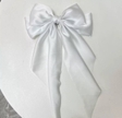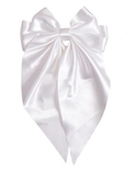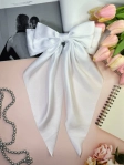 Великий бант для волосся — елегантний аксесуар, що додасть вашому образу витонченості та романтичності. Великий бант білого кольору, виготовлений з гладкого атласного матеріалу, створює розкішний акцент. Довгі, спадаючі кінці стрічки надають зачісці динамічності та легкості. Ідеально підходить для створення як повсякденних, так і святкових образів. Аксесуар кріпиться за допомогою автоматичної застібки.