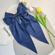Великий заколка бант для волосся — елегантний аксесуар, що додасть вашому образу витонченості та романтичності. Великий бант темно-синього кольору, виготовлений з гладкого атласного матеріалу, створює розкішний акцент. Довгі, спадаючі кінці стрічки надають зачісці динамічності та легкості. Ідеально підходить для створення як повсякденних, так і святкових образів. Аксесуар кріпиться за допомогою автоматичної застібки.