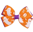 Цей чарівний бантик для волосся стане ідеальним доповненням до вашого образу на Хелловін!Дизайн: Бантик виконаний у класичних кольорах Хелловіну — помаранчевому та фіолетовому. На помаранчевій стрічці зображені милі привиди, що кажуть «Boo!», та білі краплі.Матеріал: Виготовлений з якісної текстильної стрічки, що добре тримає форму.Кріплення: Зручна застібка-заколка надійно фіксує бантик у волоссі.Розмір: Оптимальний розмір, який підійде як для дітей, так і для дорослих.Додайте нотку святкового настрою до своєї зачіски!